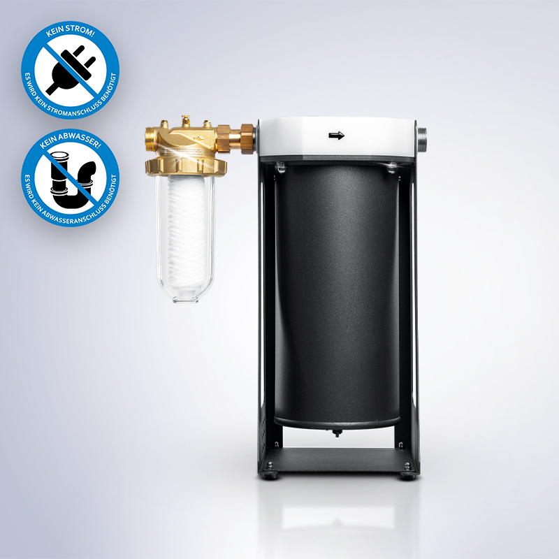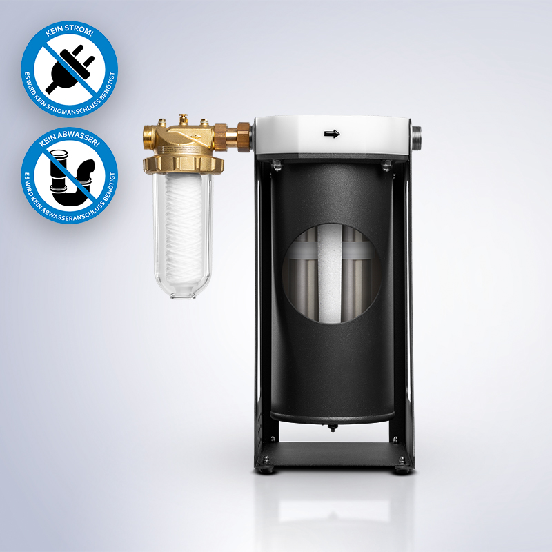 Das Wasser fließt in der ersten Reinigungsstufe durch einen speziellen 3D-Vorschaltfilter, hiermit werden kleinste Rost-, Schmutz-, oder Sandpartikel gezielt entfernt.