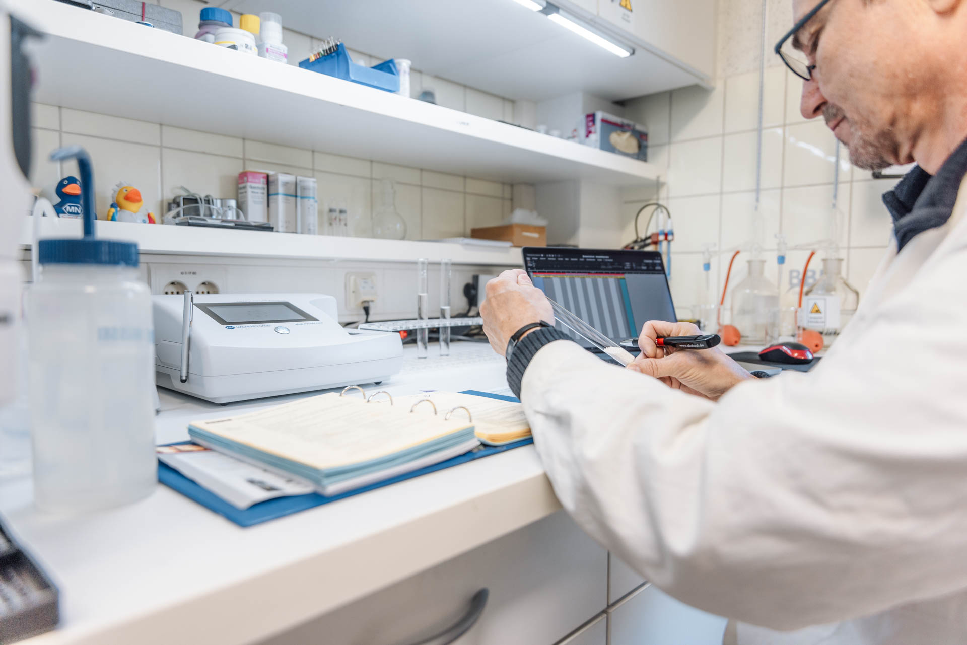 Im Rahmen unserer hausinternen Qualitätssicherung überprüfen wir regelmäßig unsere verschiedenen Hauswasseranlagen.